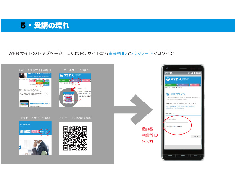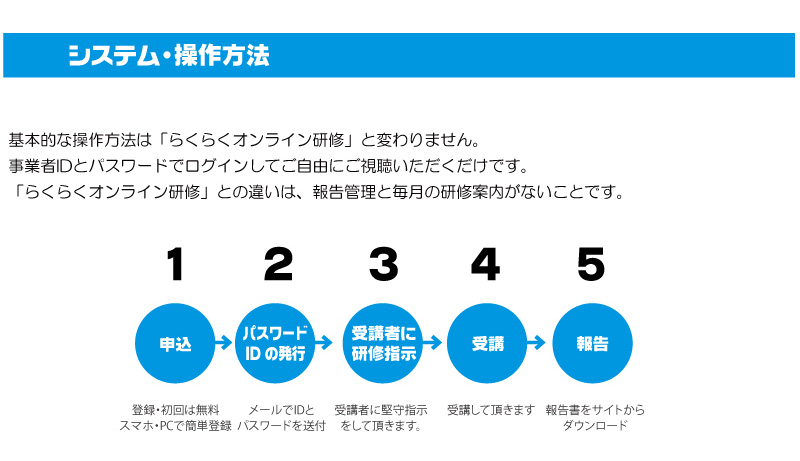 申込をされますと請求書発行の上、入金確認後2〜3日程度で、IDとパスワードが送られてきますので、必ずご確認ください。今後、ログインや受講の申込をする際に必要になります。
