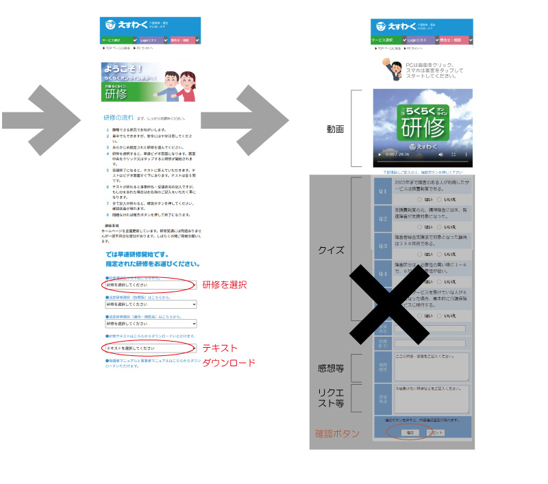 らくらくオンライン研修の質問や詳細についてのお問合せはこちらから頂けます。